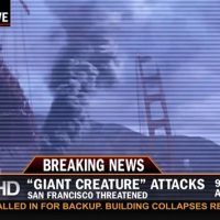 Don't worry, San Francisco isn't really under attack by giant monsters, known as Kaiju. It's just part of a viral marketing campaign for Director Guillermo del Toro's latest project, Pacific Rim.